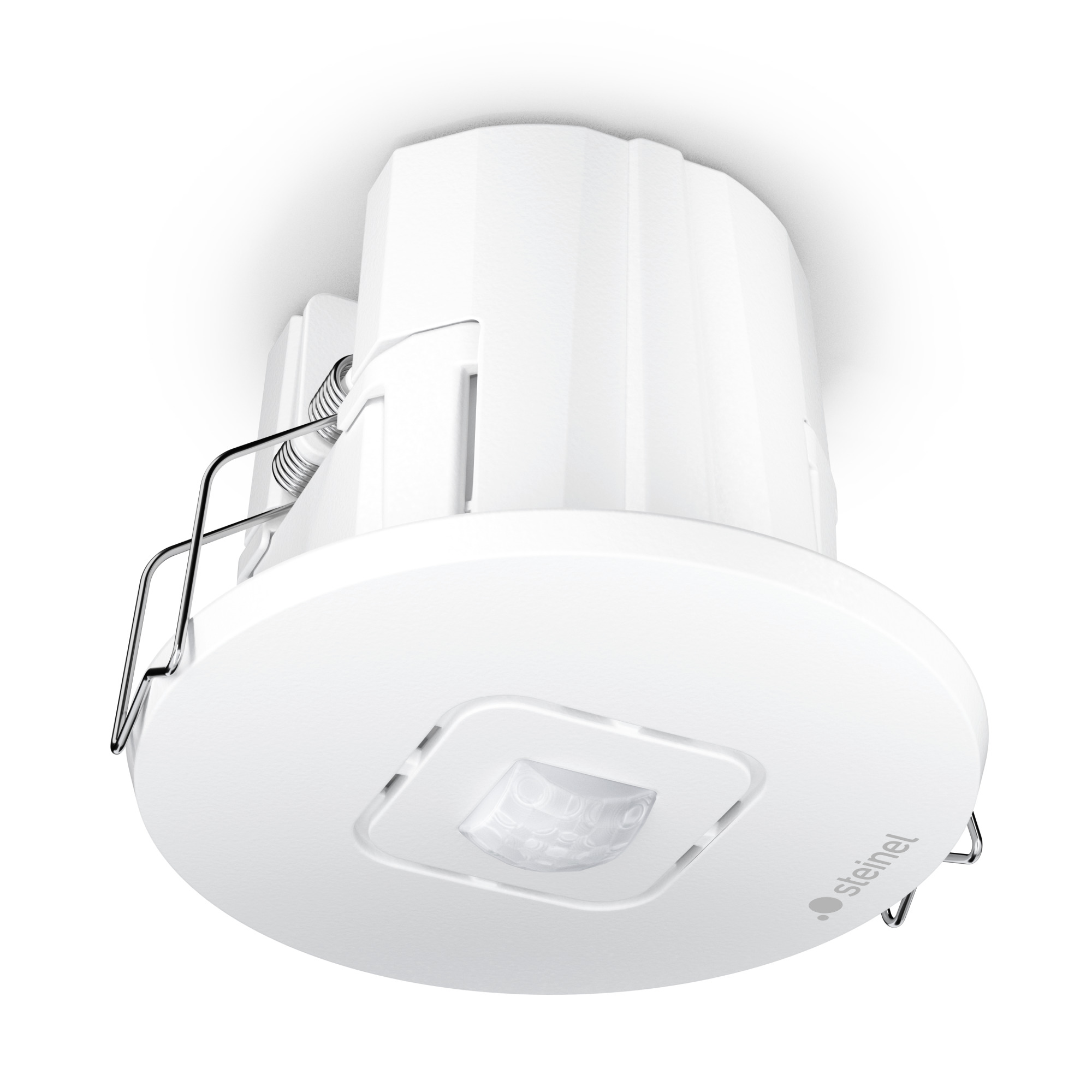 Detector de presencia y luminosidad de empotrar PIR. La altura de instalación recomendada es de 2,8 m, siendo la altura máxima de 5 m. Tiene un ángulo de detección de 360 º y un ángulo de apertura de 90º. El rango de detección tangencial es de 6 x 6 m y el rango de detección radial de 4 x 4 m.