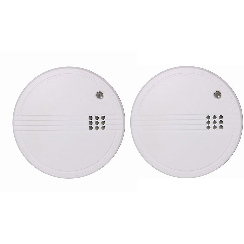 Pack de 2 detectores de humo COATI. Cada detector dispone de un botón de test para comprobar su correcta conexión y estàn preparados para evitar falsas alarmas, como el humo de un cigarro. Además, cada uno tiene una alarma de gran sonoridad, 85dB, que la hace audible a un máximo de 3 metros de distancia desde el detector.
