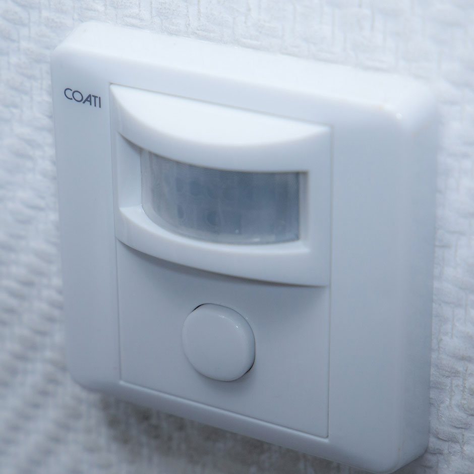 Interruptor y detector de movimiento de empotrar de la marca COATI. Este sistema de detección es especialmente útil para empotrar en una caja de mecanismo, ya que hace las veces de interruptor y de detector de movimiento. Dispone del sello de calidad COATI y ofrece un botón para controlar manualmente el uso del detector. El detector ofrece un ángulo de detección de 120º y un radio de hasta 9 metros de distancia. Además, permite regular el nivel de iluminación de funcionamiento a partir del cual se debe conectar, cuando el nivel de luz sea inferior.