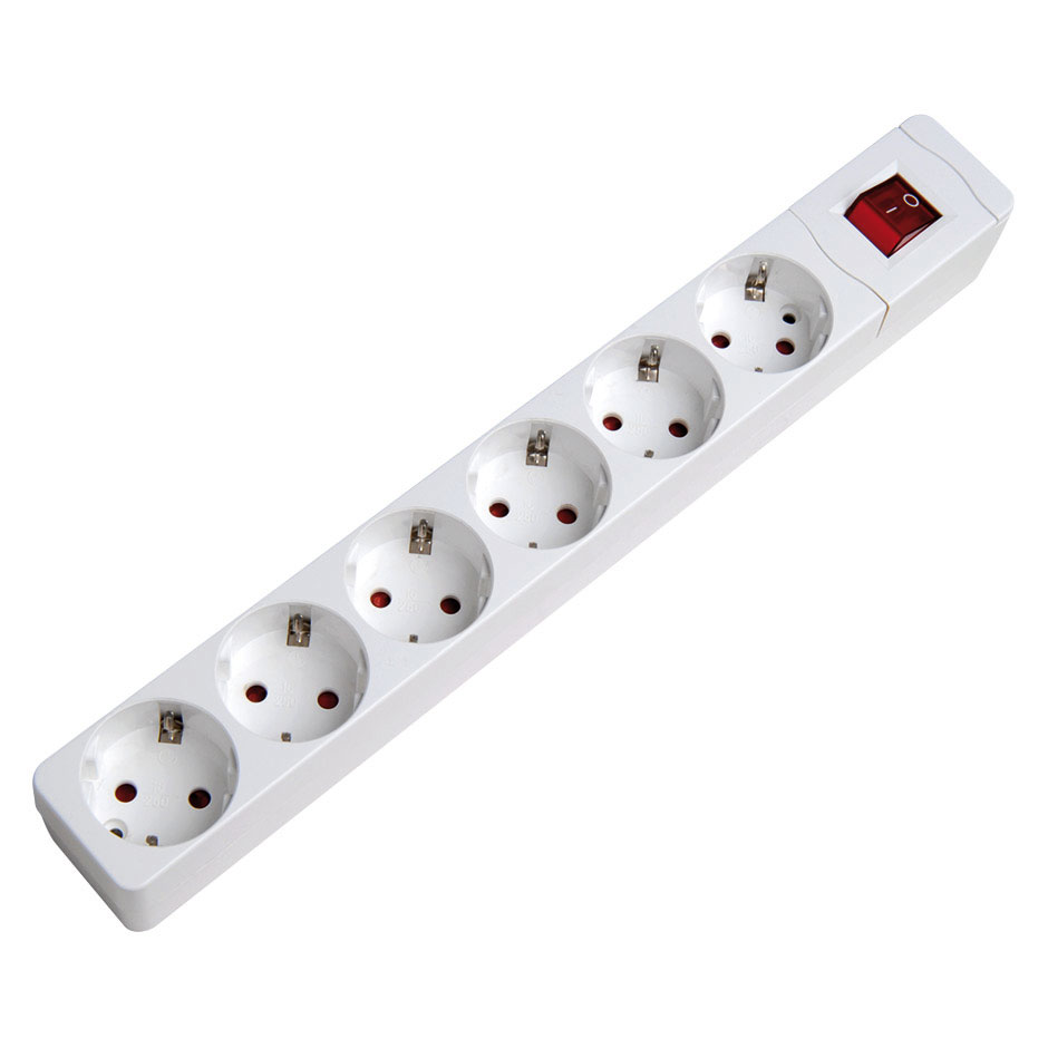 BASE MÚLTIPLE 6 TOMAS 16A 250V~ BLANCA CON INTERRUPTOR Y SIN CABLE Vlogٷ Brico