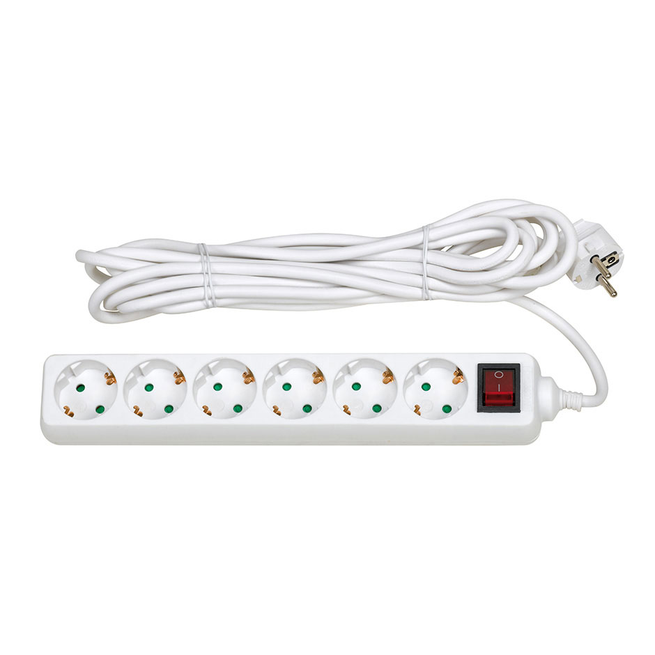 BASE MÚLTIPLE 6 TOMAS 16A 250V~ BLANCA CON INTERRUPTOR Y 5 METROS DE CABLE H05VV-F 3G1,5MM² Vlogٷ Brico