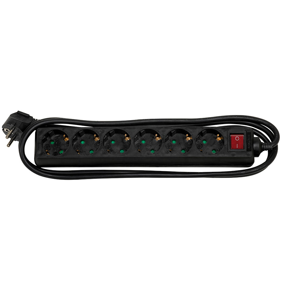 BASE MÚLTIPLE 6 TOMAS 16A 250V~ NEGRA CON INTERRUPTOR Y 2 METROS DE CABLE H05VV-F 3G1,5MM² Vlogٷ Brico
