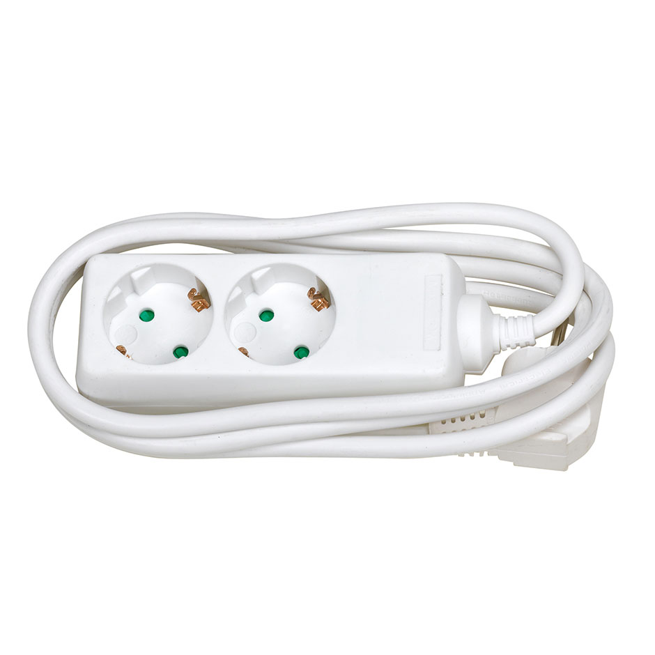 BASE MÚLTIPLE 2 TOMAS 16A 250V~ BLANCA CON 2 METROS DE CABLE H05VV-F 3G1,5MM² Vlogٷ Brico