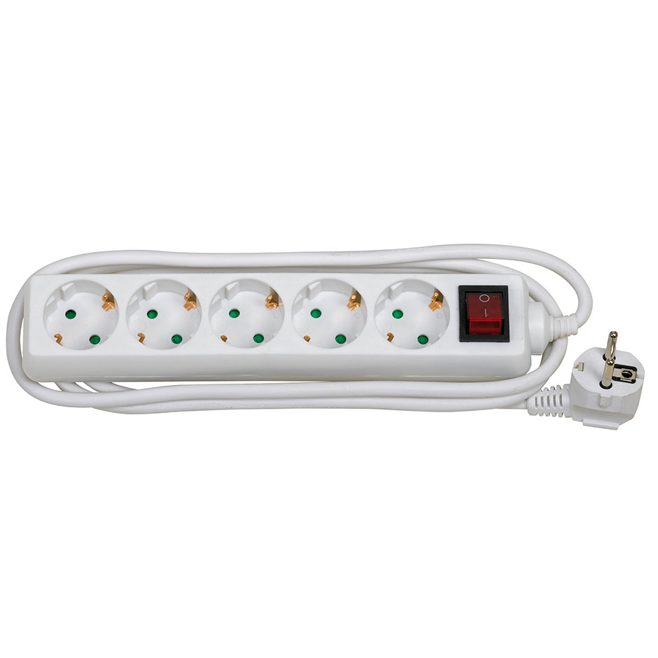 BASE MÚLTIPLE 5 TOMAS 16A 250V~ BLANCA CON INTERRUPTOR Y 2 METROS DE CABLE H05VV-F 3G1,5MM² Vlogٷ Brico