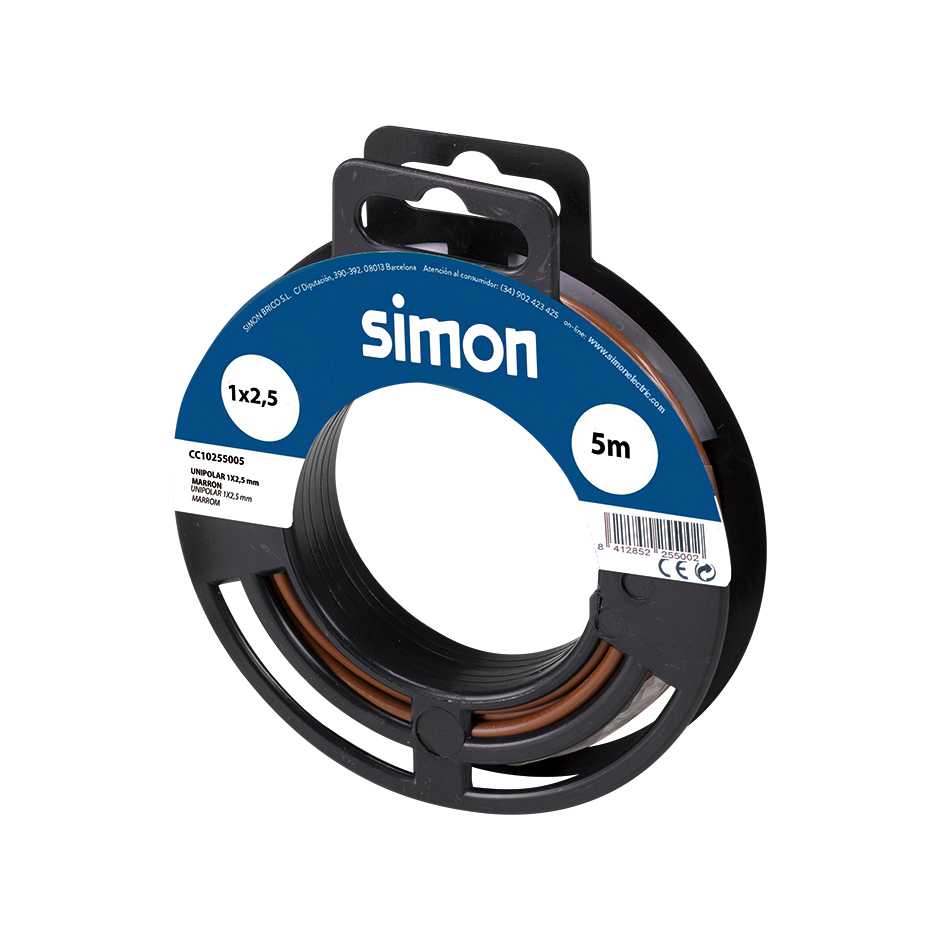 Carrete de 5 metros de cable unipolar H07V-K marrón para la función de fase de 2,5mm² de diámetro con cubierta de aislamiento de PVC flexible. Soporta una tensión entre 300 y 500 Voltios. Este cable es ideal para el uso en exteriores para elementos de muy bajo consumo tales como termostatos, timbres o sistemas de seguridad.