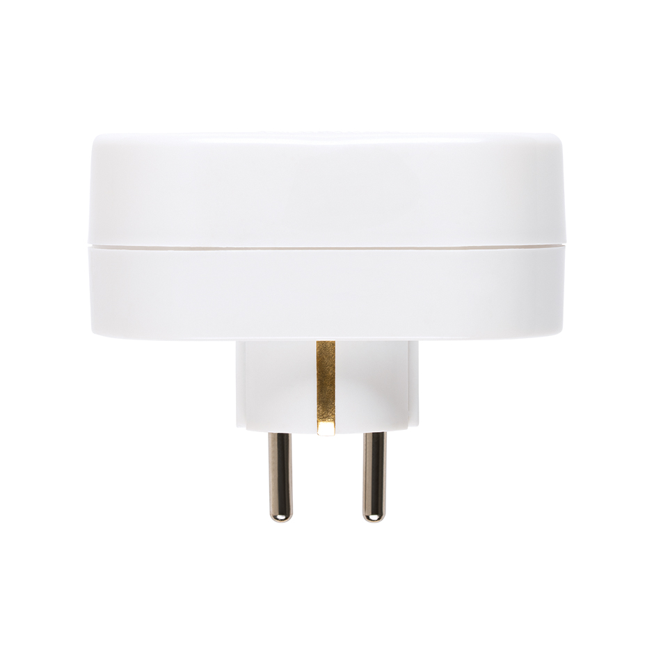 El adaptador frontal doble de SIMON con toma tierra permite añadir dos enchufes adicionales sin perder estética. Color blanco y diseño compacto.