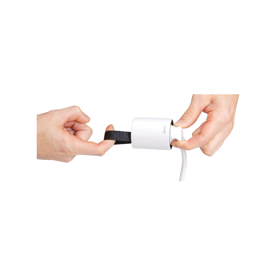 La base móvil de SIMON con salida de cables frontal de 16A es ideal para colocar en espacios reducidos o detrás de muebles y electrodomésticos. De acabado color blanco y negro, ha sido diseñada en forma cilíndrica y sin esquinas. También cuenta con sistema easy-pull para facilitar la extracción mediante su cinta de nylon.