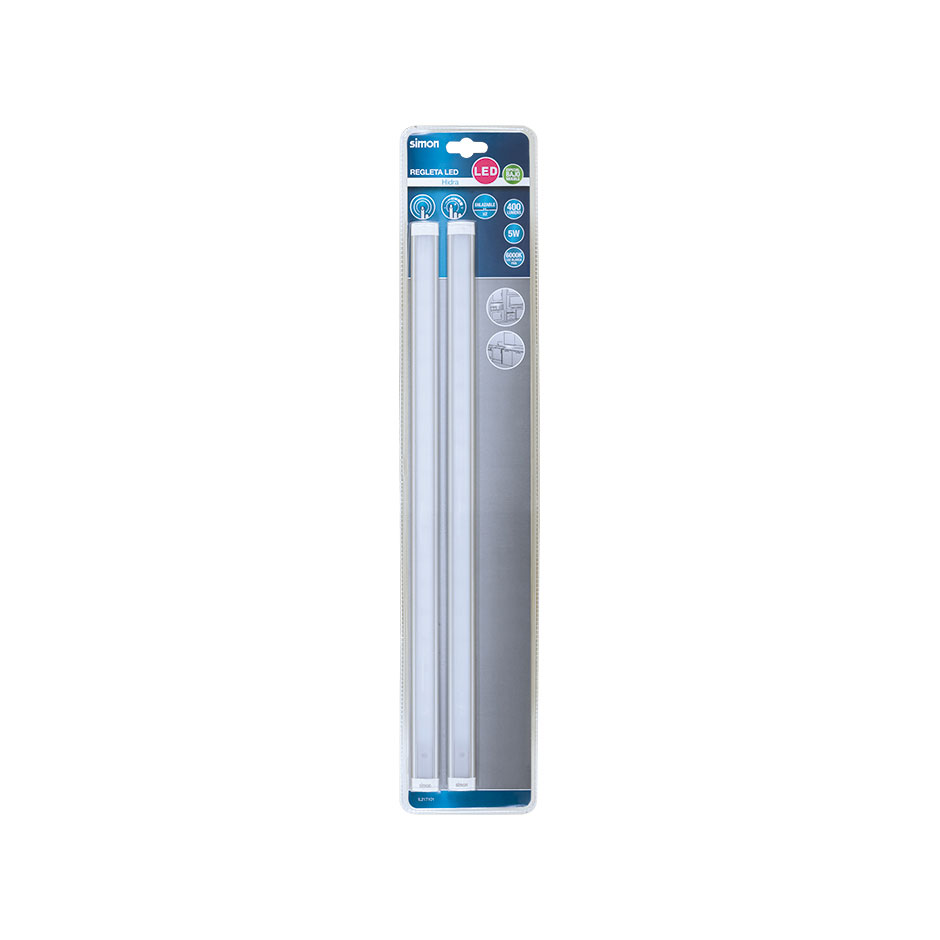 La regleta LED Hidra de SIMON está especialmente diseñada para instalar bajo mueble, sobre todo en cocinas al disponer de un interruptor y regulador de intensidad táctil, muy útil cuando se cocina. Además, gracias a su grosor de 9 mm, podrás ahorrar espacio y colocarla en todo tipo de espacios. Esta tira LED consta de único módulo no sustituible que ofrece una iluminación blanca fría de 400 lúmenes con una potencia de 5 vatios. Se instala mediante un soporte que se puede fijar con cinta adhesiva o tornillos. Incluye dos tiras de luz enlazables entre ellas (conector incluido).