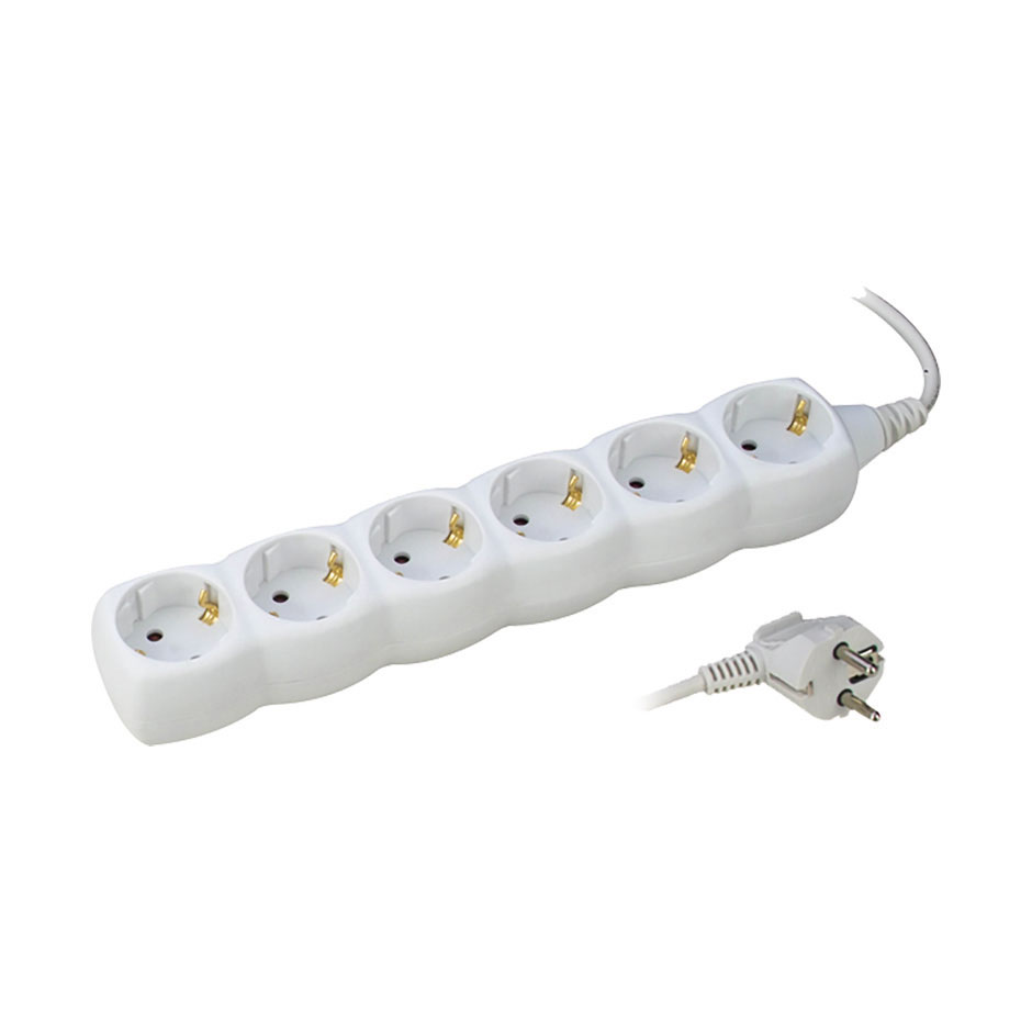 Base múltipla branca com 6 tomadas de 16 A, 250 V~ com 1,5 metros de cabo H05VV-F 3G 1 mm
