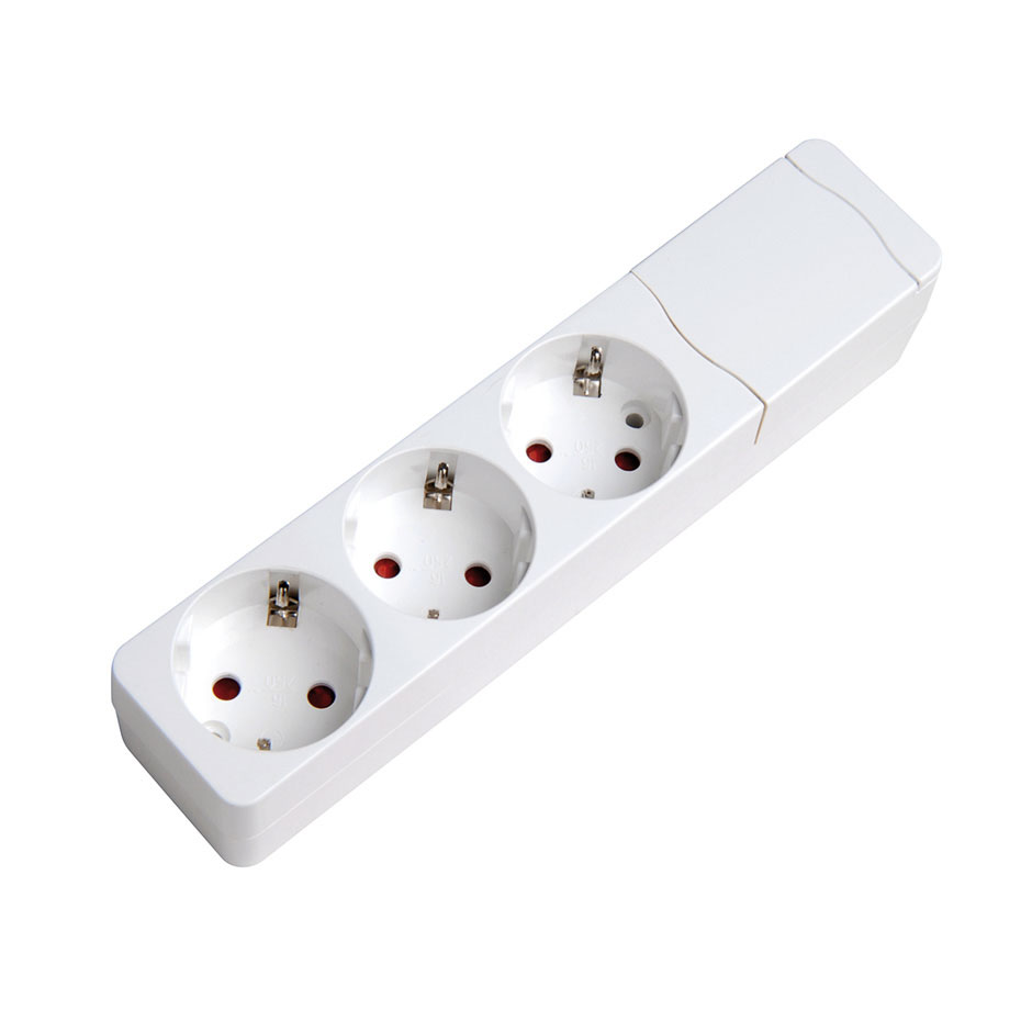 Base múltipla branca de fixação adequada para parede com 3 tomadas de 16 A 250 V~, sem cabo,