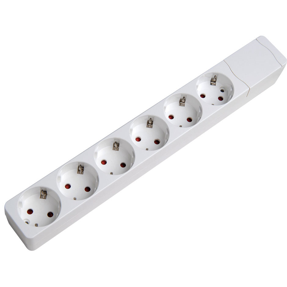 Base múltipla branca de fixação adequada para parede com 6 tomadas de 16 A 250 V~, sem cabo,