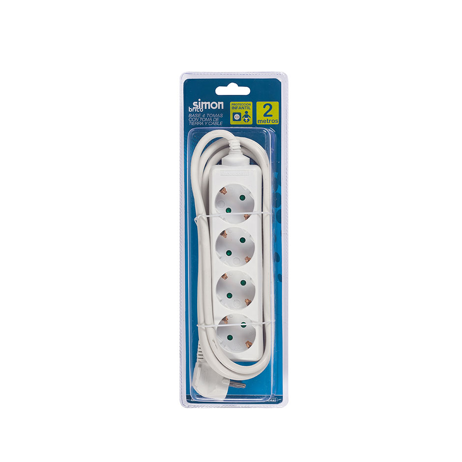 Base múltipla branca com 4 tomadas de 16 amperes com ligação à terra da marca SIMON BRICO e cabo de 2 metros, 3G 1,5 mm².
