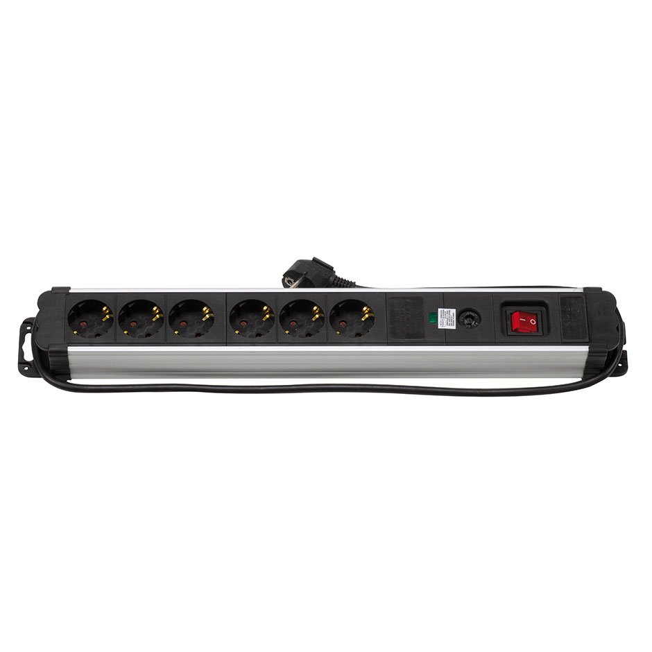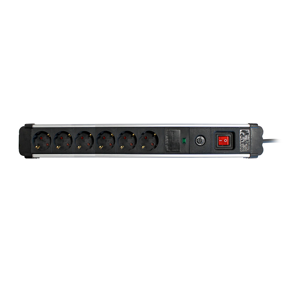 Base múltipla Extrapower com 6 tomadas de 16 A e 250 V~, em alumÃnio com proteção contra sobretensões, 1,5 metros de cabo H05VV-F, 3G 1,5 mm² da