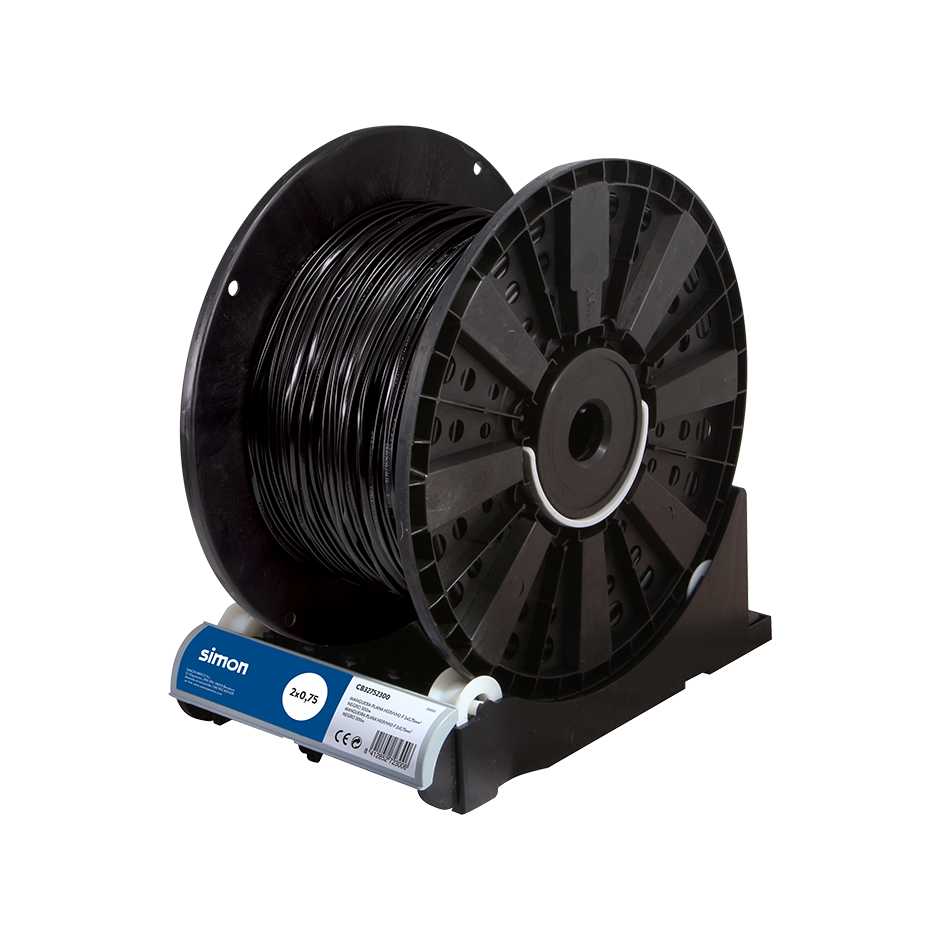 Bobina de 300 metros de cabo de mangueira plana H03VVH2-F branco de 2 fios e 0,75 mm² de diâmetro com revestimento de isolamento em PVC flexÃvel. Cabo para aplicação e alimentação de aparelhos para serviços leves de muito baixo consumo, como xxx. Suporta uma tensão de 300 volts.