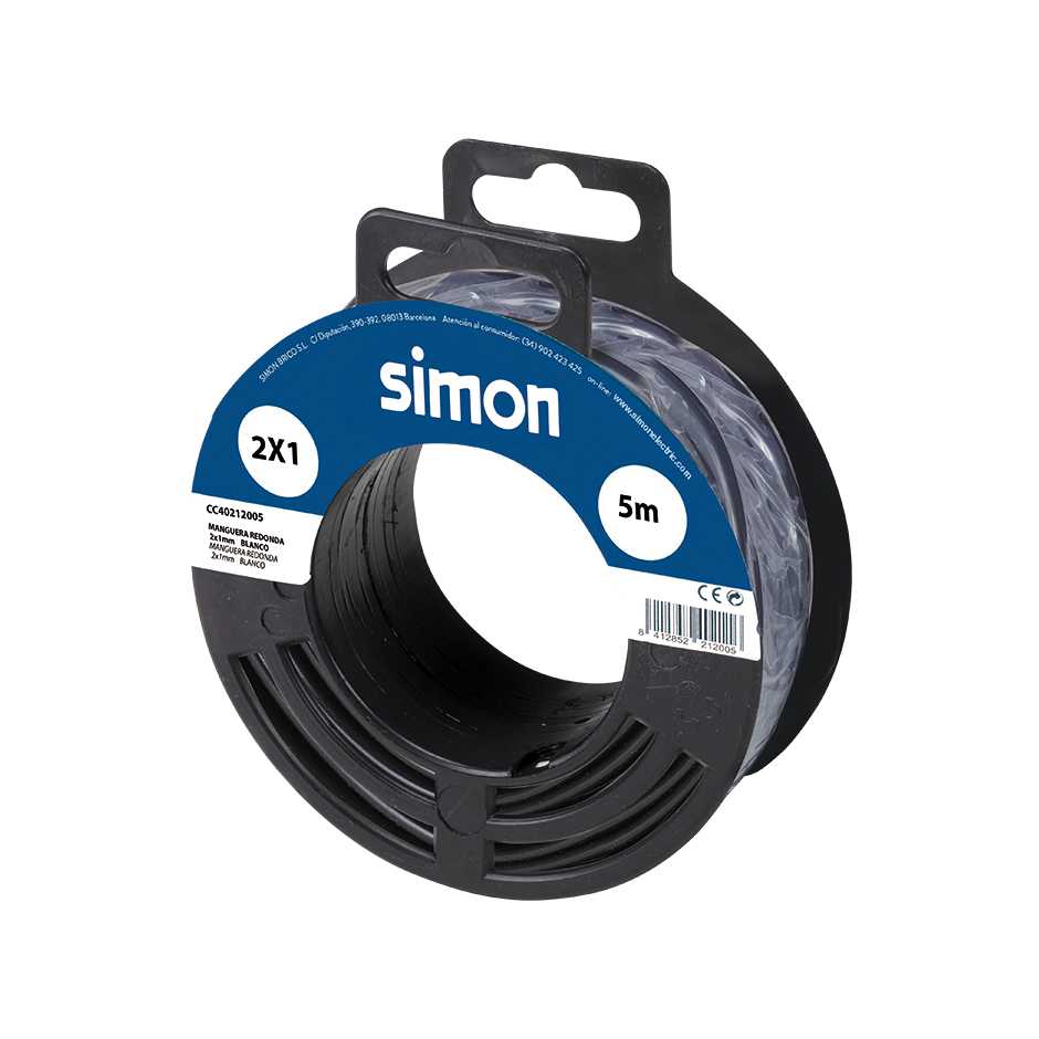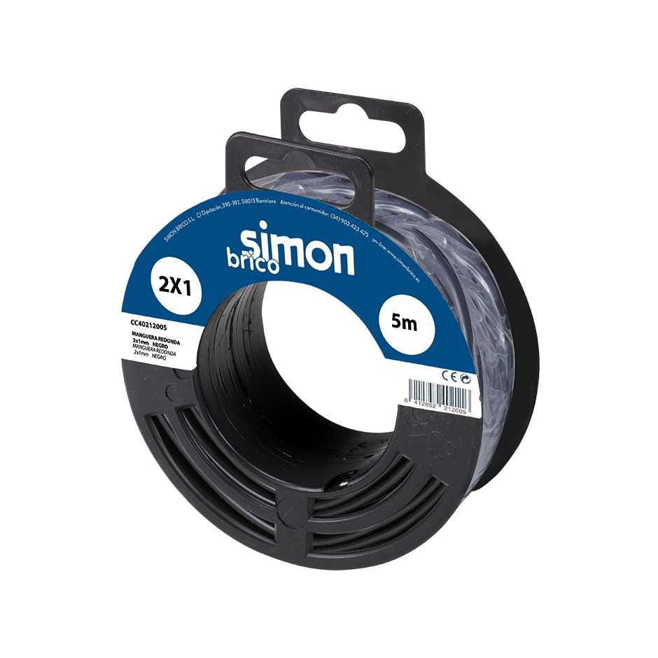 Rolo de 5 metros de cabo preto de mangueira redonda H05VV-F, de 2 fios e 1 mm² de diâmetro com revestimento de isolamento em PVC flexÃvel. Suporta uma tensão entre 300 e 500 volts. Este cabo é ideal para elementos de muito baixo consumo, tais como termóstatos, campainhas ou sistemas de segurança.