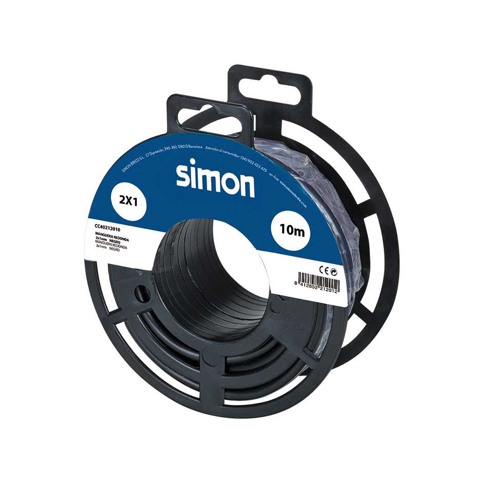 Rolo de 10 metros de cabo preto de mangueira redonda H05VV-F, de 2 fios e 1 mm² de diâmetro com revestimento de isolamento em PVC flexÃvel. Suporta uma tensão entre 300 e 500 volts. Este cabo é ideal para elementos de muito baixo consumo, tais como termóstatos, campainhas ou sistemas de segurança.