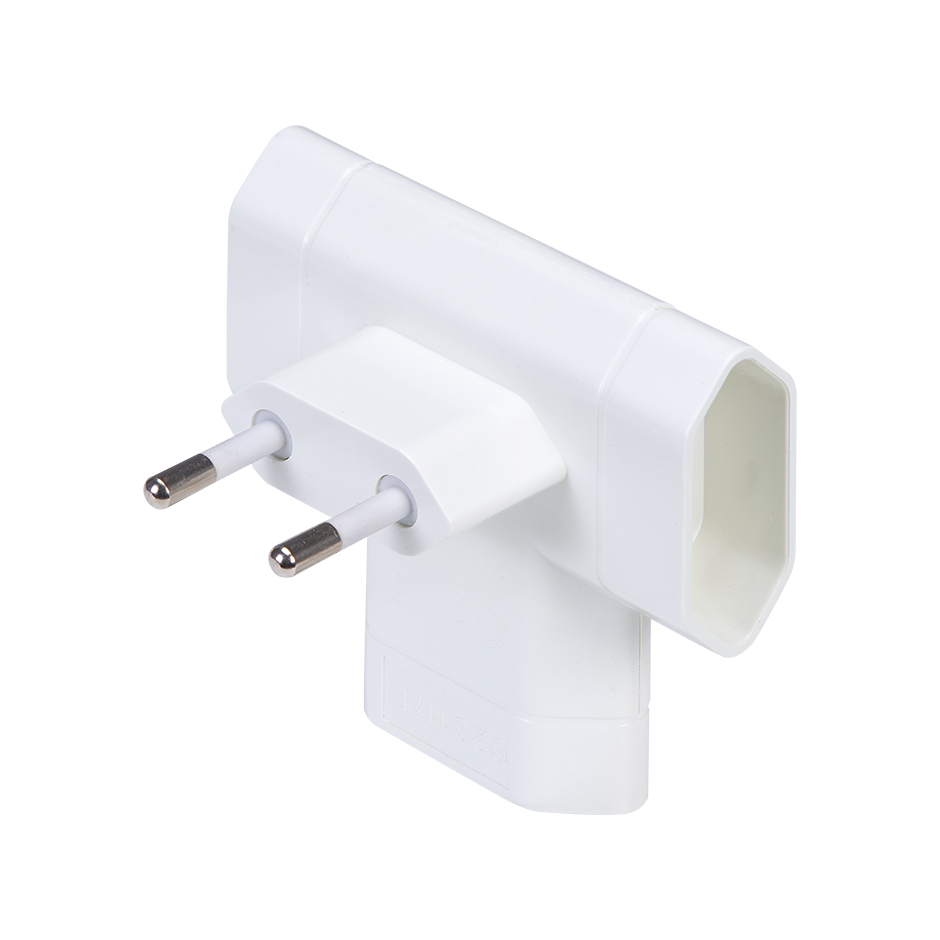 Adaptador branco, triplo, lateral de 10 A, 250 V