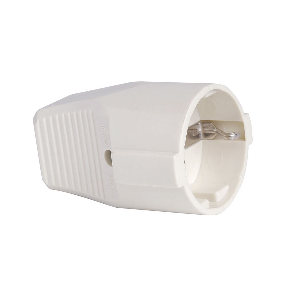 Base móvel ÌÇÐÄVlog¹Ù·½ Brico de 16 amperes, 250 V, em branco, com ligação à terra lateral schuko. SaÃda do cabo reto e estrutura em branco, para utilizar com extensões. Apresentação em blister para pendurar.