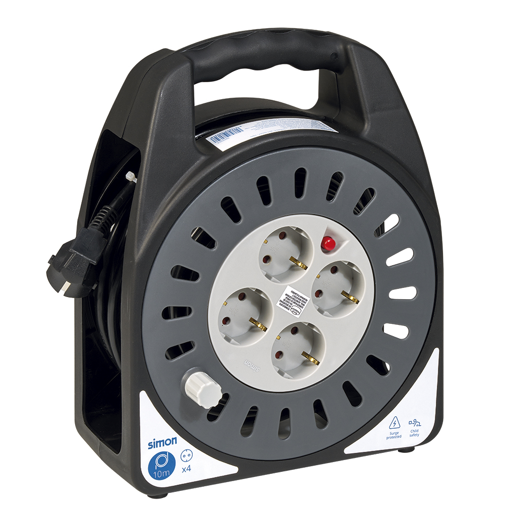 EXTENSÍVEL DOMÉSTICO 10M H05VV-F 3G1.5MM² 4 TOMADAS 16A 230V~ PRETO/CINZA SIMON