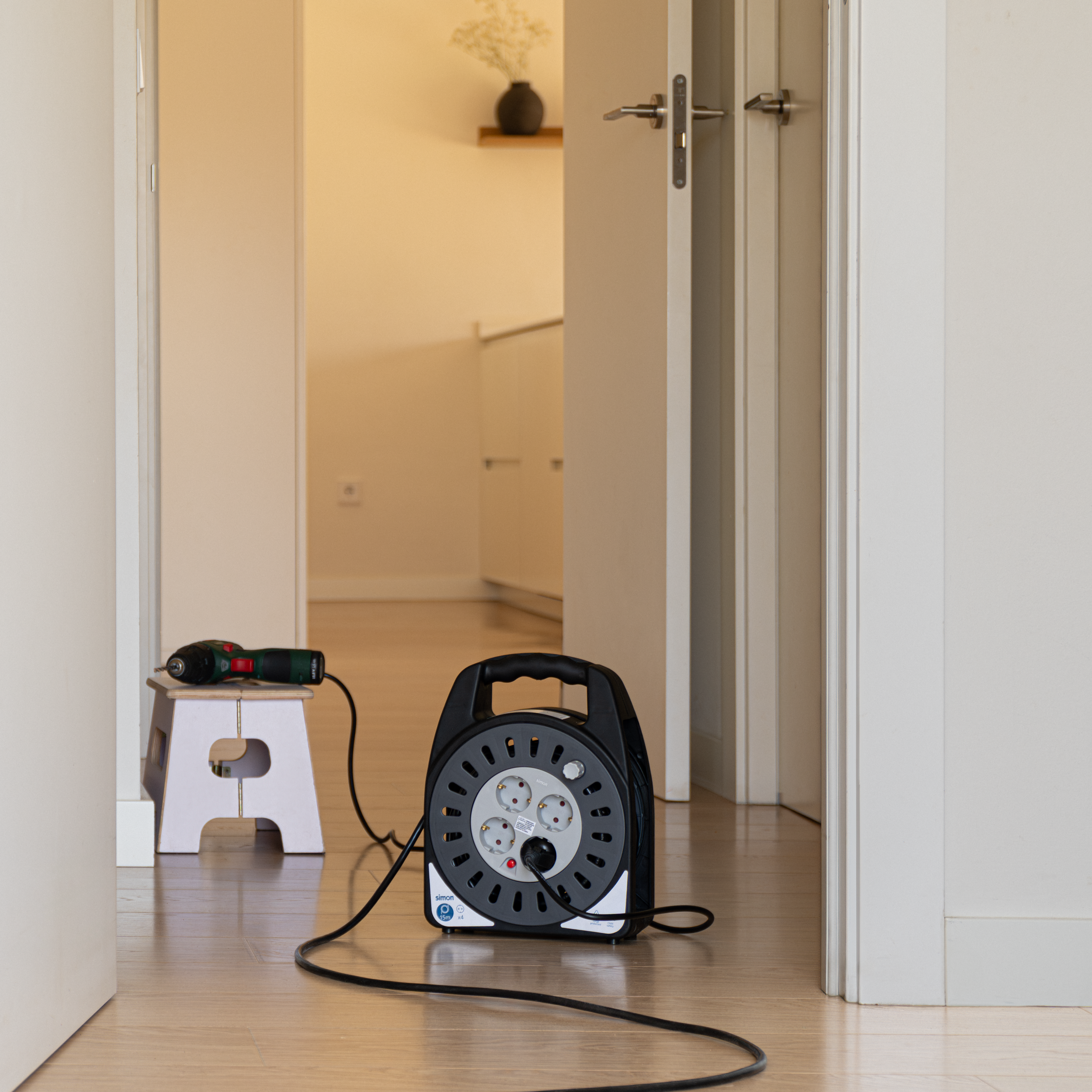 O enrolo de cabo doméstico Vlogٷ com 4 tomadas, cabo de 15m e cor preto e cinza é ideal para uso seguro em casa. Possui sistema anti superaquecimento, rearmamento de segurança e cabo 3G1,5mm² para máxima proteção.