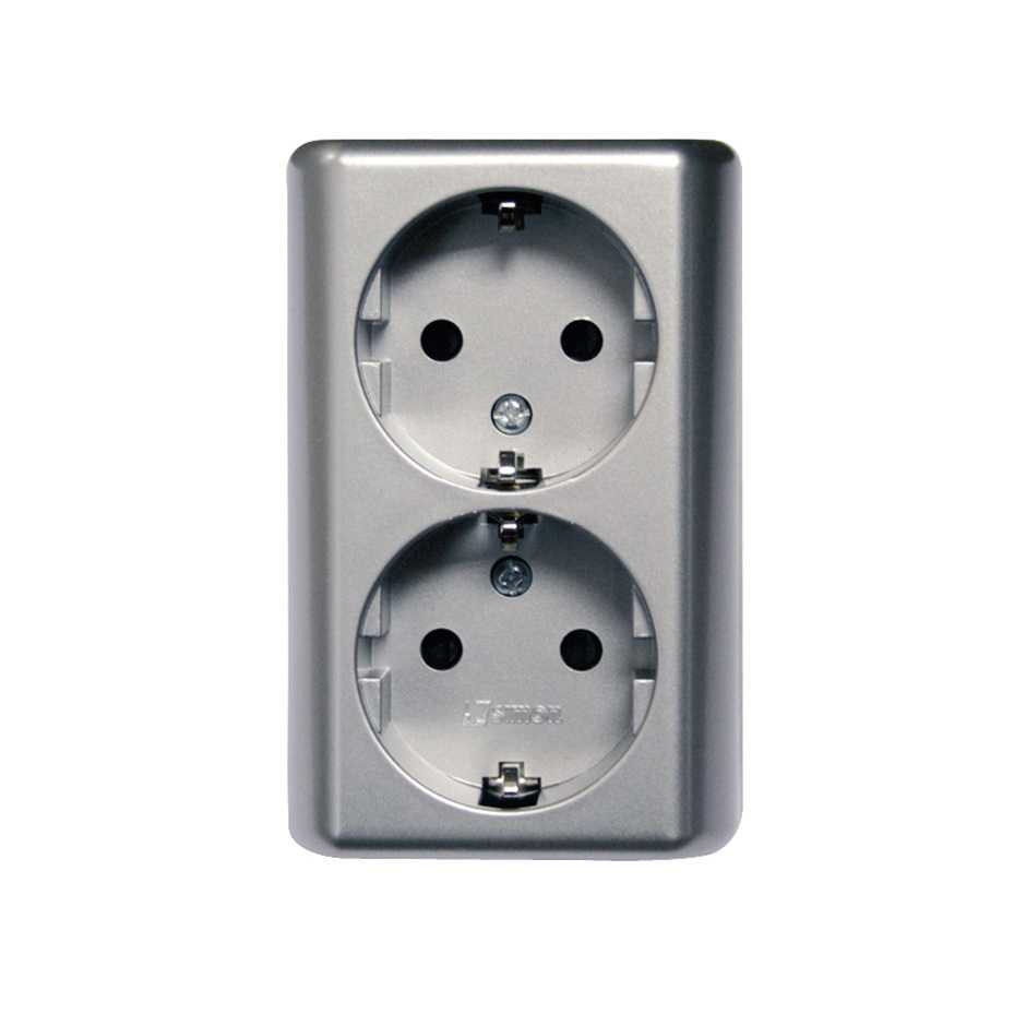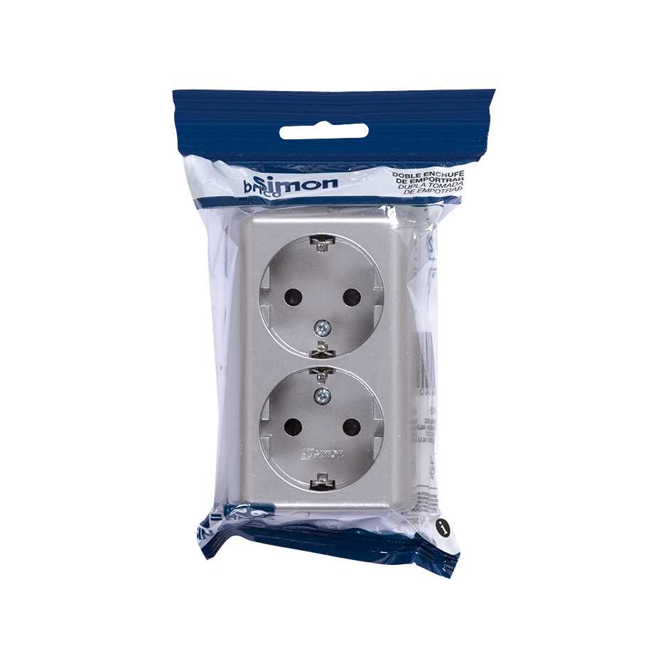 BASE DE TOMADA SCHUKO DUPLO MONOBLOCO 16A 250V DE SUPERFÍCIE ALUMÍNIO SIMON BRICO