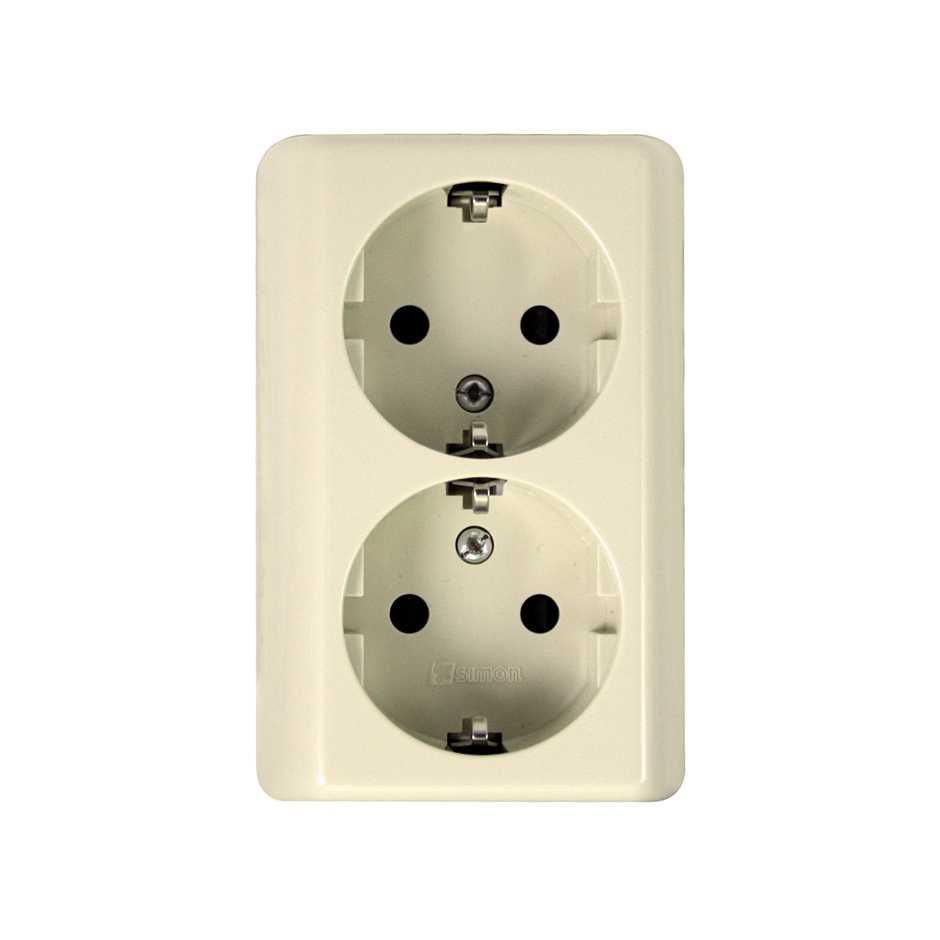BASE DE TOMADA SCHUKO DUPLO MONOBLOCO 16A 250V DE SUPERFÍCIE MARFIM SIMON BRICO